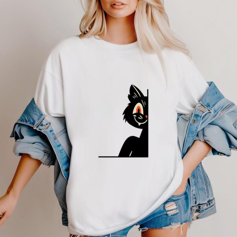 Your everyday go-to Black Cat With Orange Eyes Peeking T Shirt T Shirt , soft, comfy, and easy to love. Makes a sweet little gift too.