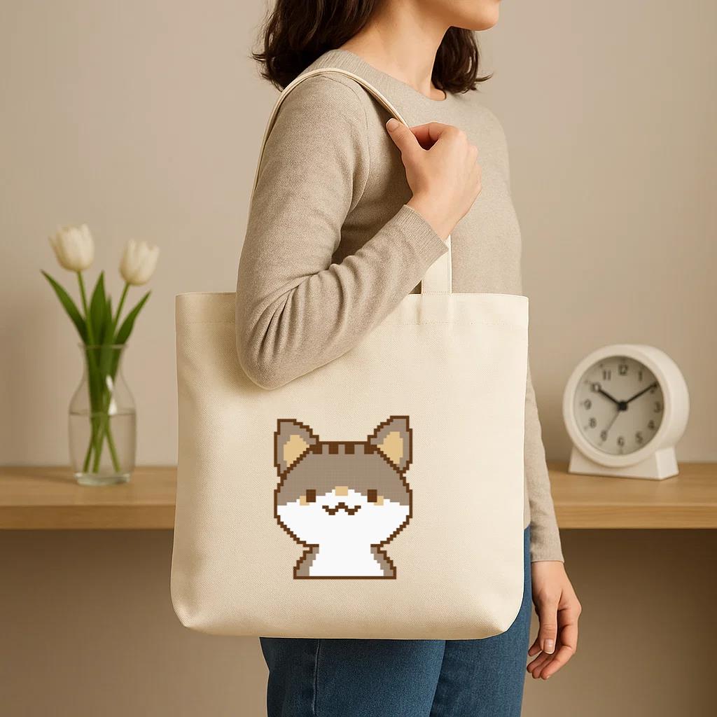 Chic, durable, and reusable , this Cute Cat In Pixel Art Style Canvas Tote Bag Canvas Tote Bag is your daily go-to or a thoughtful gift for any occasion.
