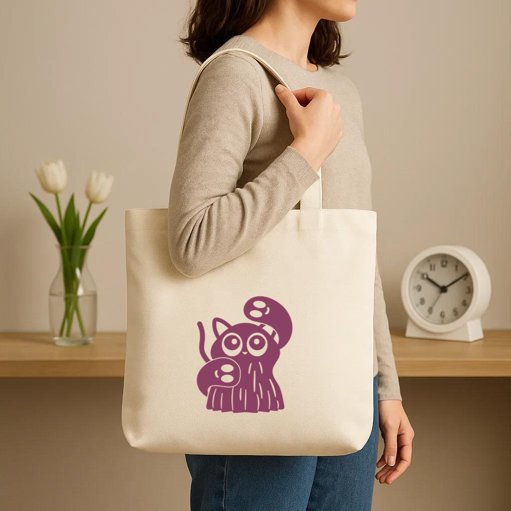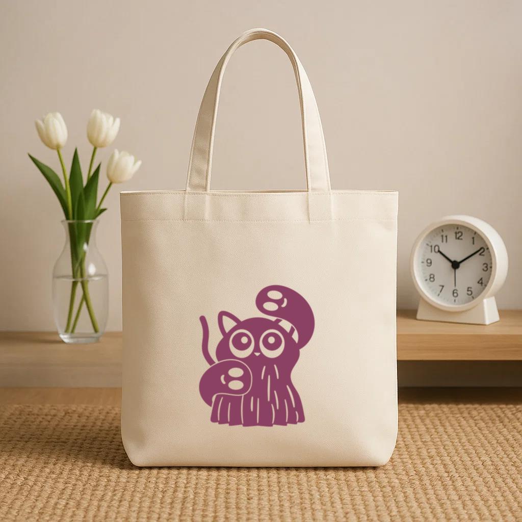 Chic, durable, and reusable , this Cute Purple Cat With Ghosts Canvas Tote Bag Canvas Tote Bag is your daily go-to or a thoughtful gift for any occasion.