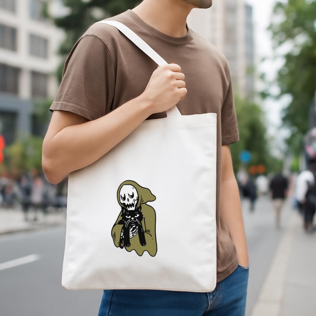 Chic, durable, and reusable , this Grim Reaper Holding A Black Cat Canvas Tote Bag Canvas Tote Bag is your daily go-to or a thoughtful gift for any occasion.