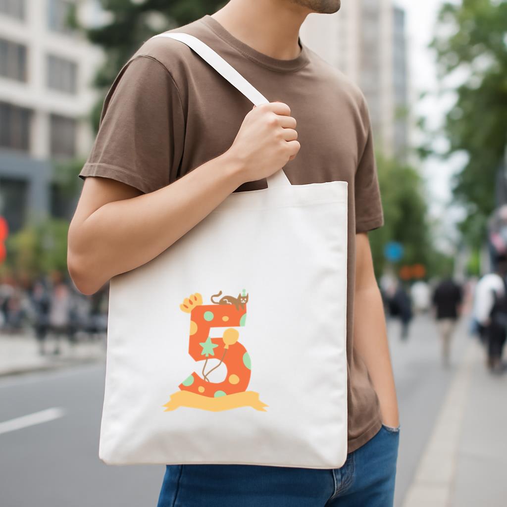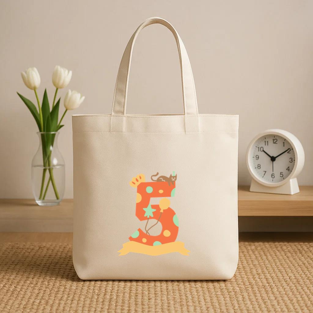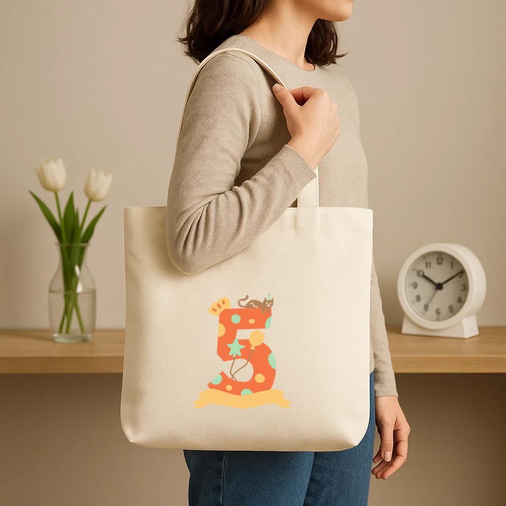 Chic, durable, and reusable , this The Number Five With A Cat And Balloons Canvas Tote Bag Canvas Tote Bag is your daily go-to or a thoughtful gift for any occasion.
